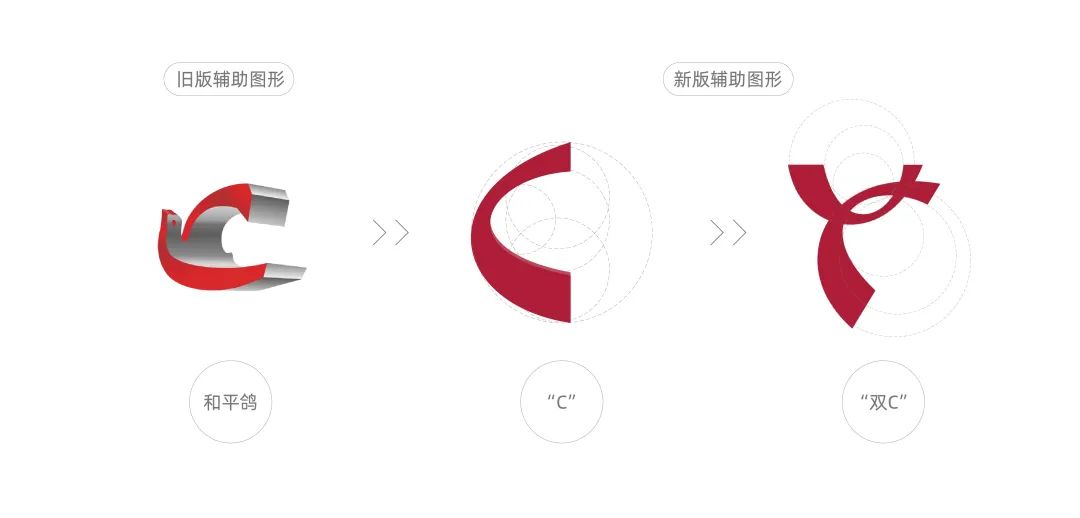 从代表Peace&Love的“和平鸽”,转变为当前的新图形“C”,演变使品牌辅助图形更贴近新发展阶段特征,传