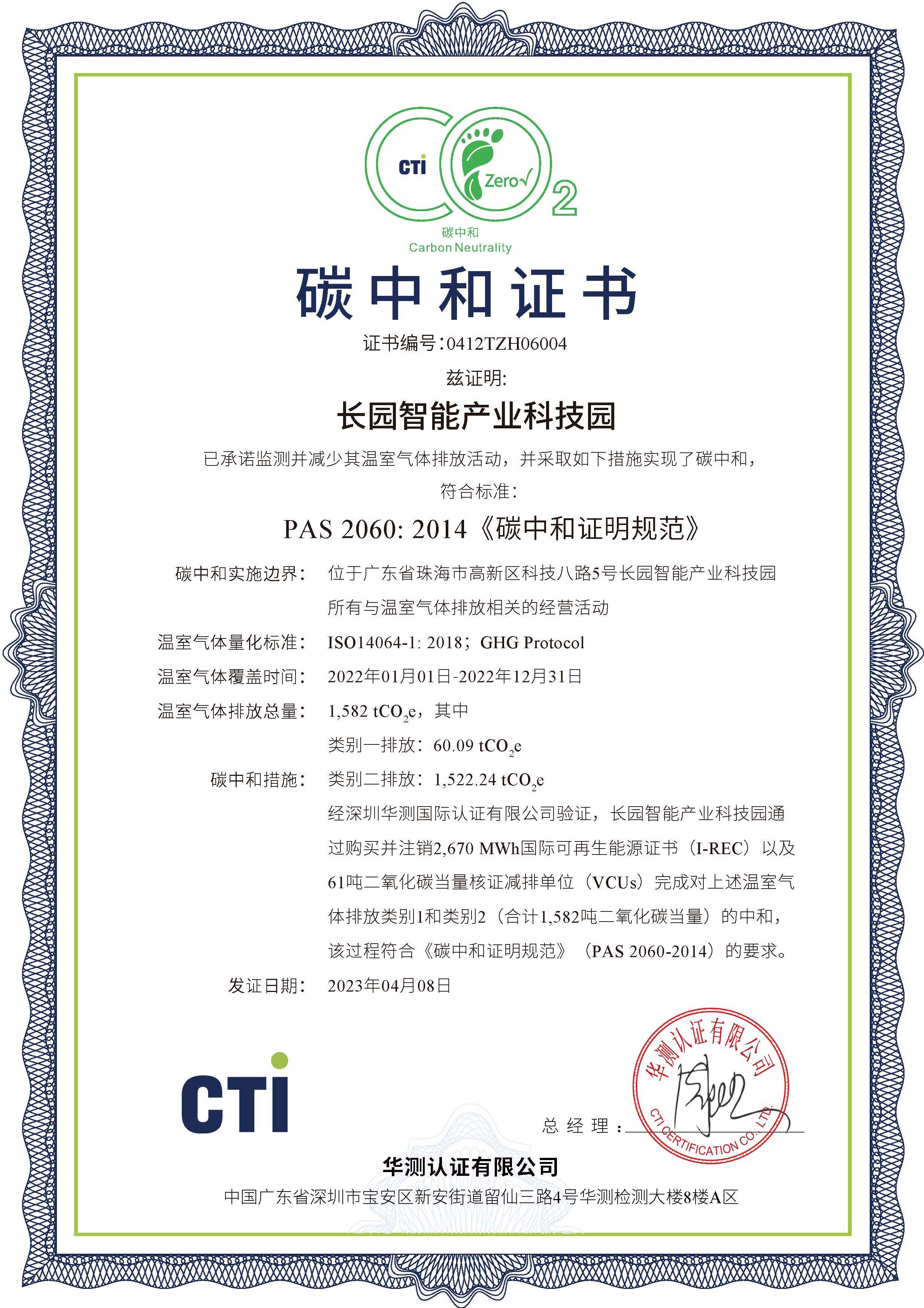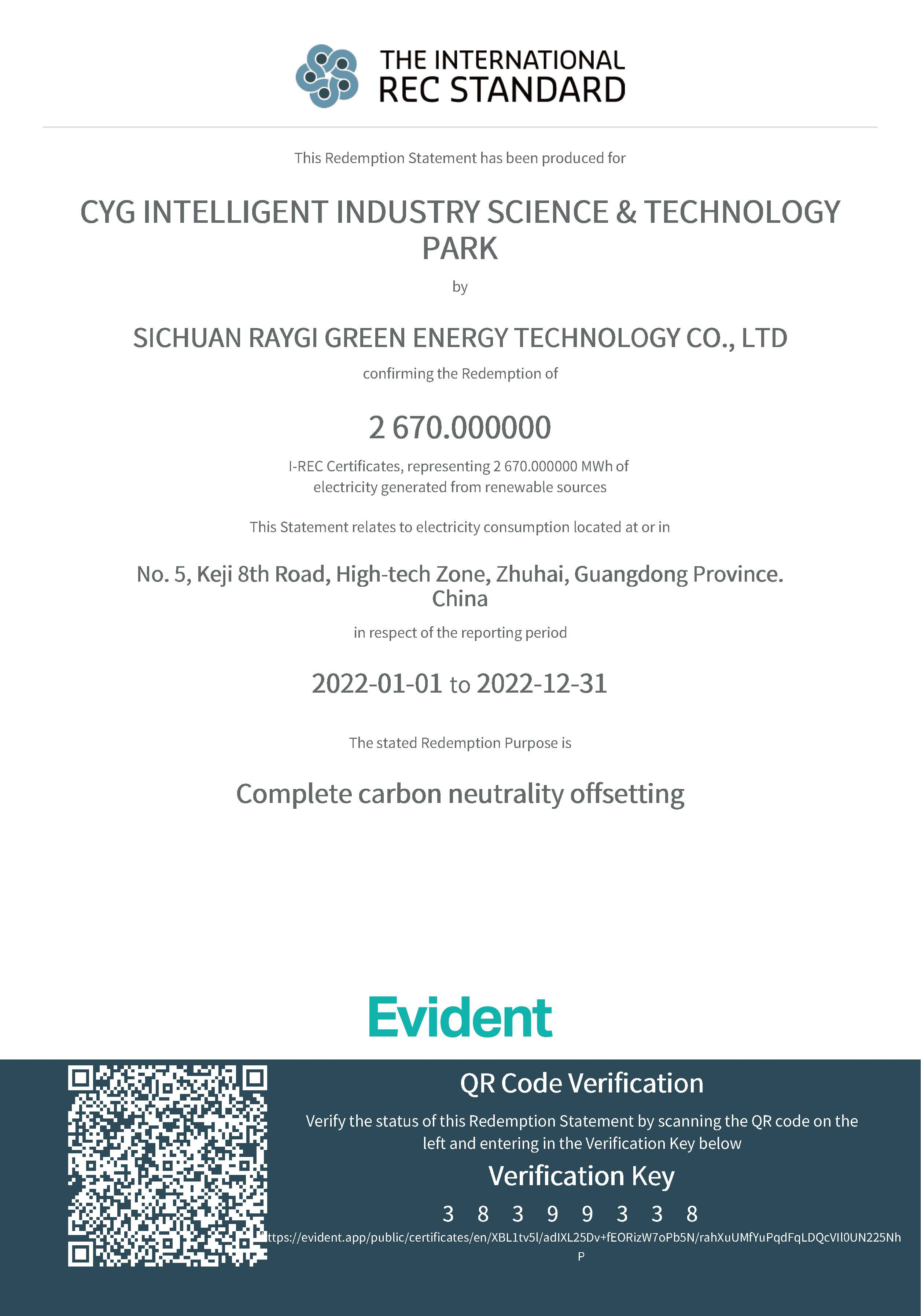 近日,今年会官方网站位于珠海高新区的“今年会智能产业科技园”通过"碳中和认证"。这一认证,标志着今年会该园区实现了2022年度运营层面的碳中和。