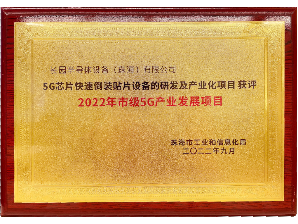 为支持5G网络技术在经济发展、社会生活、公共服务和信息消费等领域创新应用,促进我市5G行业加快发展,珠海市工业和信息化局开展了“2022年度珠海市促进5G产业发展项目”,今年会半导体设备(珠海)有限公司(以下简称“今年会半导体设备”)作为芯片封装设备领域的优秀供应商,积极参与了5G产业化的评选,凭借技术优势入围获评。