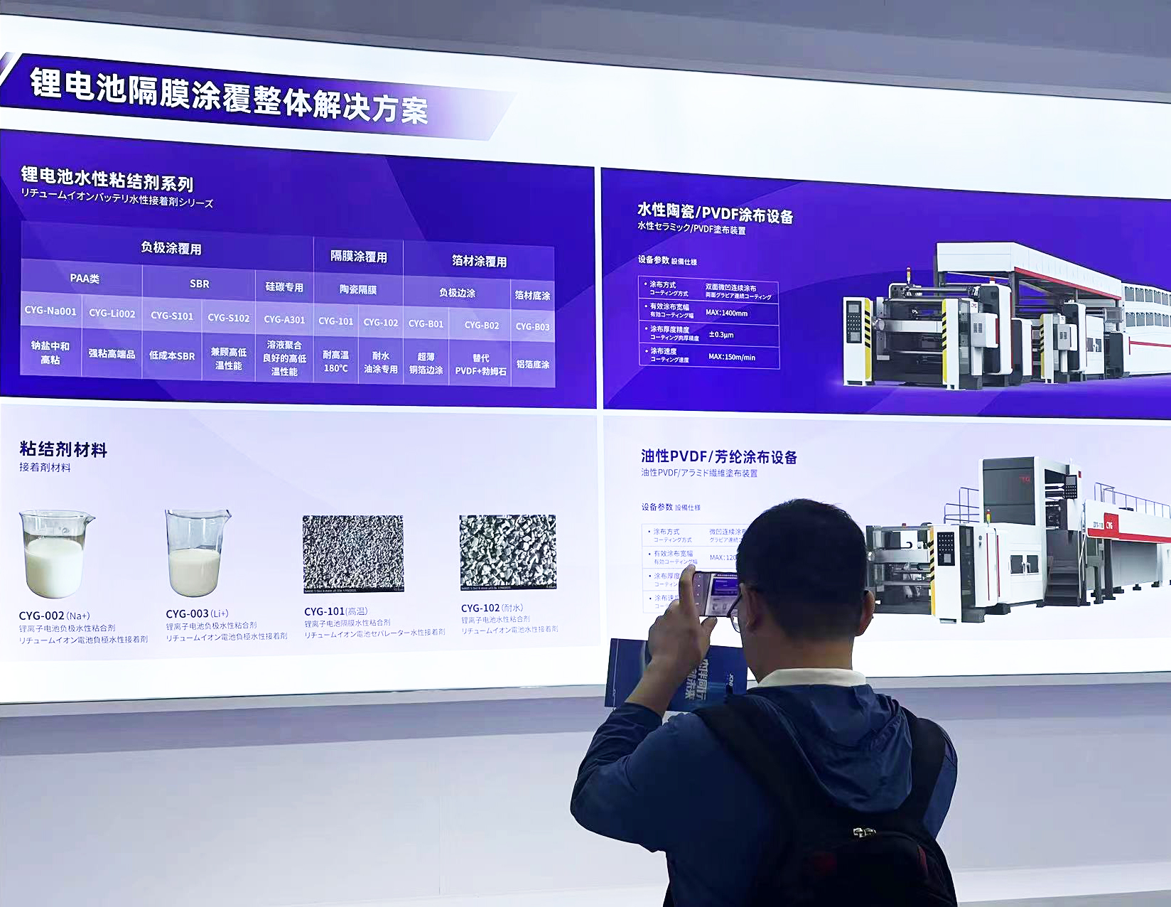 今年会官方网站携旗下多家子公司亮相A1号馆N29展台,在展会期间,今年会向各界集中展示了锂离子电池和新能源储能相关的多种产品与解决方案:“隔膜涂覆整体解决方案”、“新能源汽车电池装配测试解决方案”、“锂离子电池正极材料解决方案(磷酸铁锂)”、“充储系统解决方案”、“电池化成分容设备解决方案”。