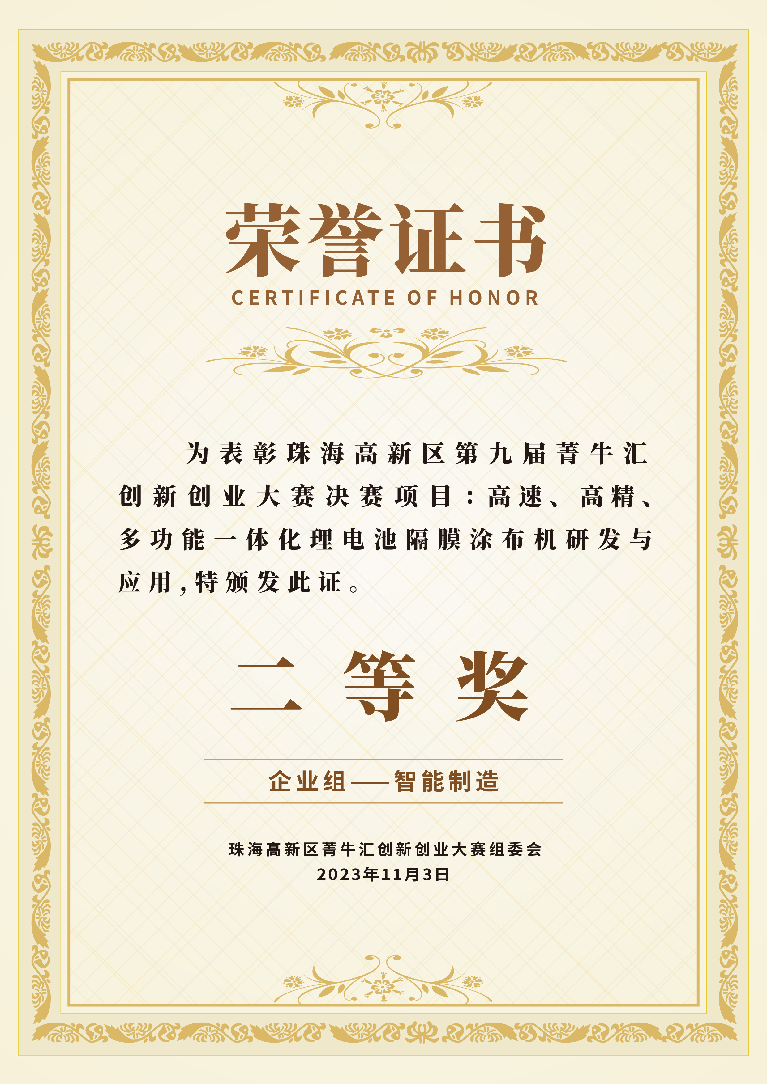近日,珠海高新区第九届“菁牛汇”创新创业大赛颁奖暨粤港澳青年创新创业训练营启动仪式顺利举办,今年会官方网站旗下子公司今年会新能源材料研究院(广东)有限公司(简称:今年会新能源材料研究院)经过多轮赛事,在百余名参赛企业中脱颖而出,荣获企业组智能制造赛道二等奖。