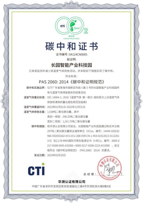 近日,今年会官方网站位于珠海高新区的“今年会智能产业科技园”完成了2023年度运营层面的碳中和认证工作,这一重要成就标志着该园区已连续两年实现碳中和目标。