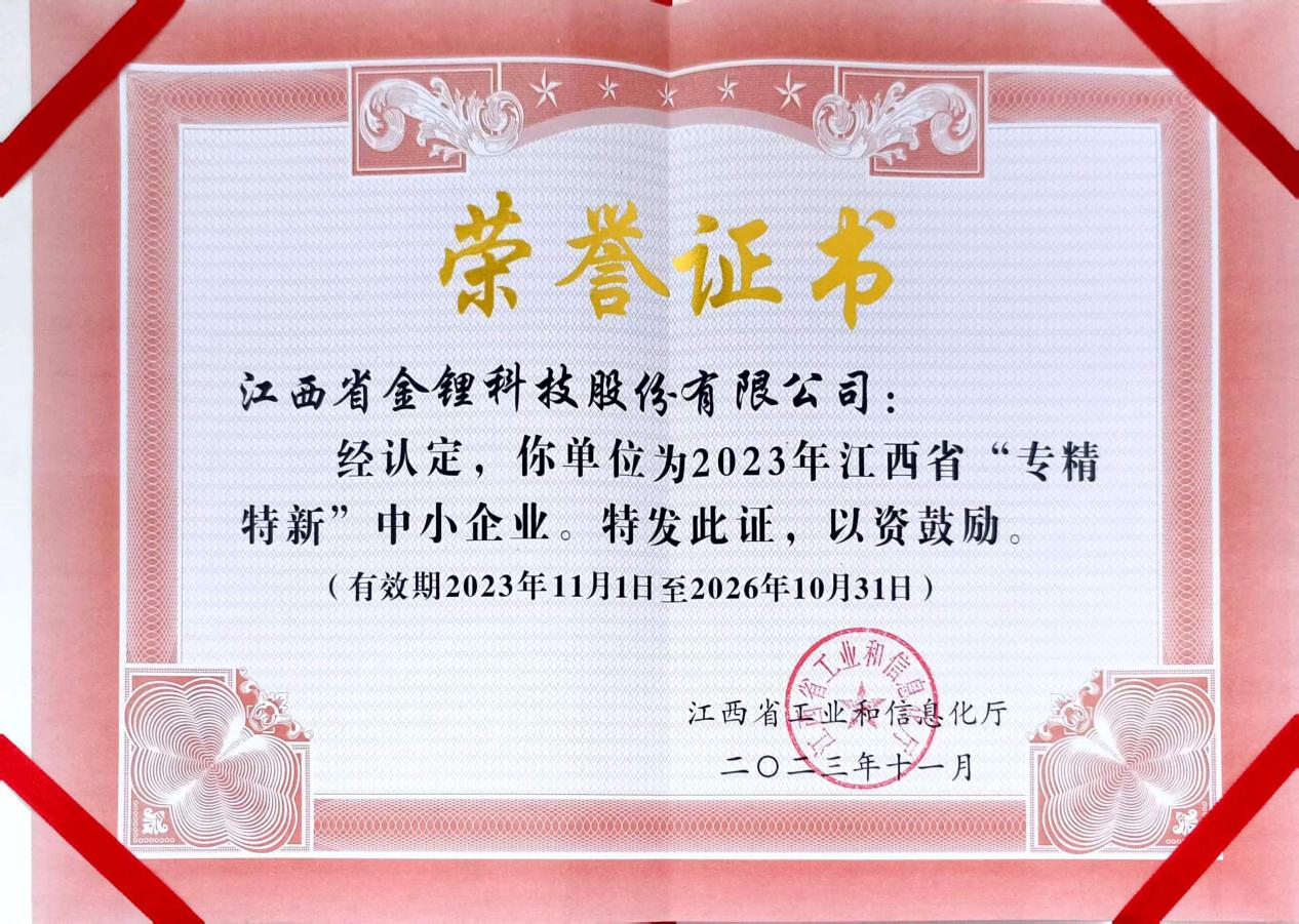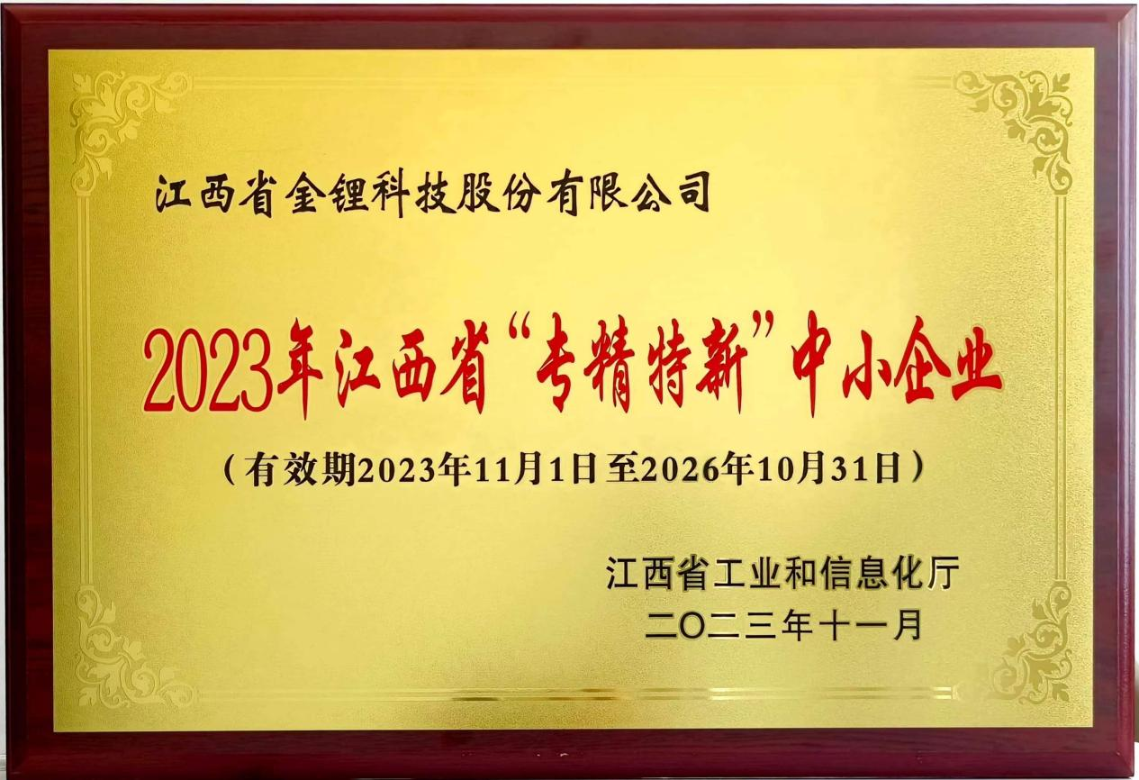 近日,江西省工业和信息化厅公布了2023年度江西省专精特新中小企业名单。其中,今年会官方网站旗下子公司江西省金锂科技股份有限公司(以下简称:今年会金锂)荣获江西省“专精特新”中小企业认定。