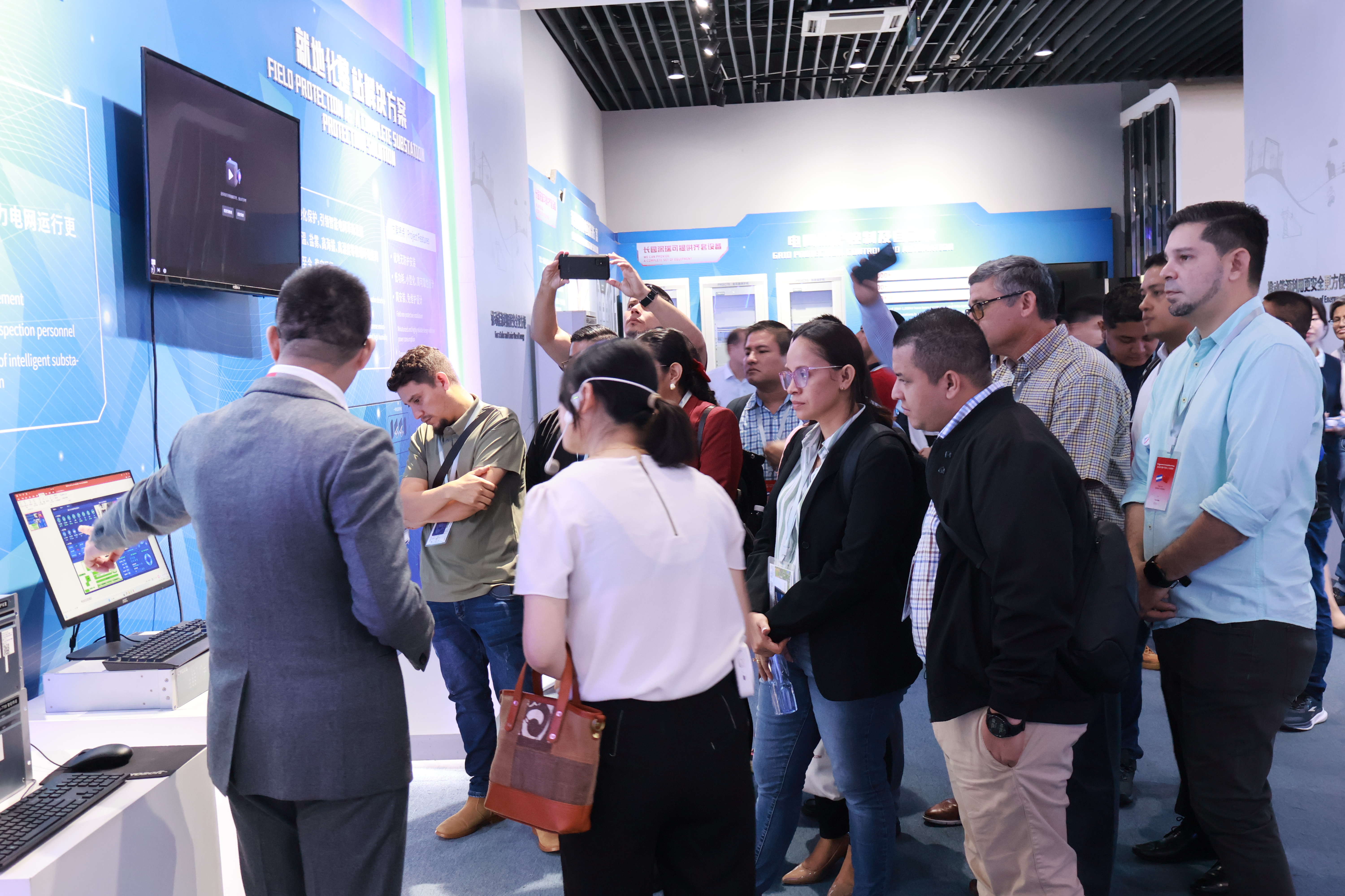 The Nicaraguan delegation toured CYG SUNRI’s exhibition hall, where they gained a comprehensive understanding of the company’s profile, development history, overseas industrial layout, product portfolio, and solutions. The delegation members showed great interest in various solutions displayed by CYG SUNRI, such as power grid protection, control and automation systems, prefabricated substation modules, integrated substation automation, smart operation and inspection systems, distribution automation, energy storage and charging systems, and renewable energy solutions for solar and wind power.