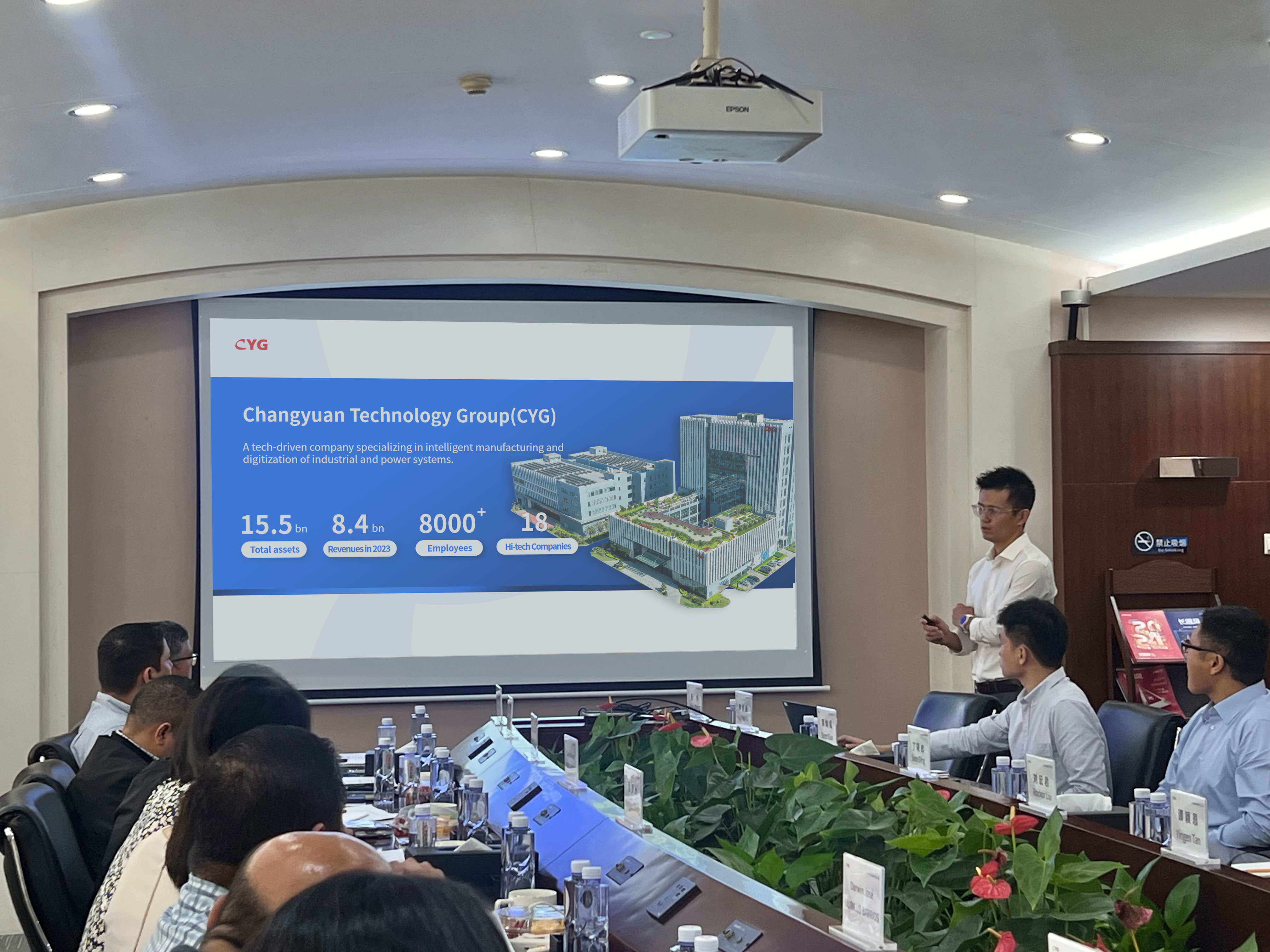 Following the tour, the delegation engaged in discussions with CYG SUNRI. Mr. Ding Xiaosong, Vice General Manager of CYG SUNRI and General Manager of the International Marketing Center, attended and chaired the meeting. Mr. Ding warmly welcomed the delegation and provided a detailed introduction to CYG SUNRI’s global business scale and development plans.